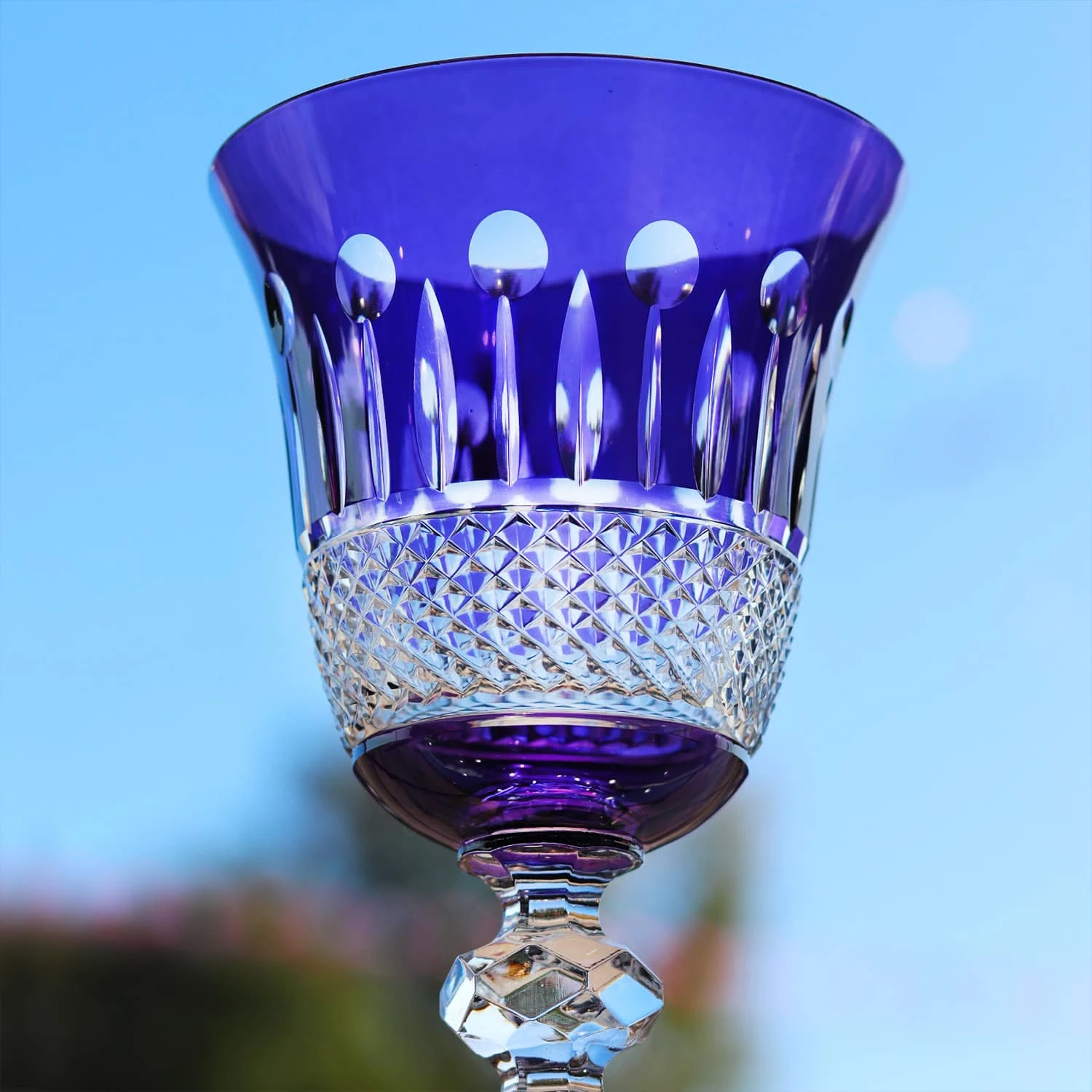 Solidement campé sur ses coudes, les yeux rivés sur la meule, le regard transperçant la matière noble. Le tailleur mesure son geste avec souplesse et fermeté, chaque entaille étant irréversible, une extrême concentration de tous les instants ainsi que des années de pratique sont nécessaires pour acquérir la dextérité des grands tailleurs de cristal. Découvrir le service Yvan.