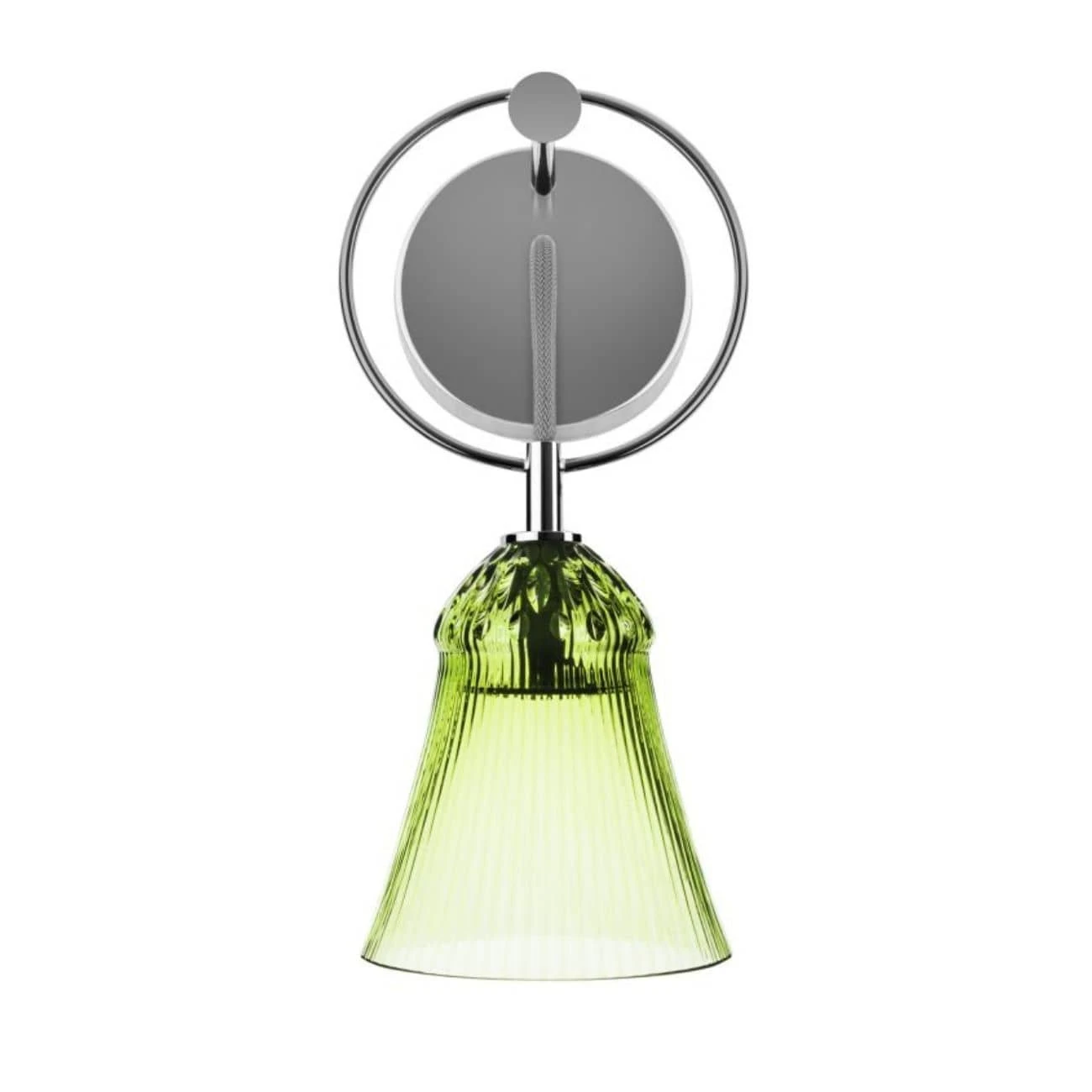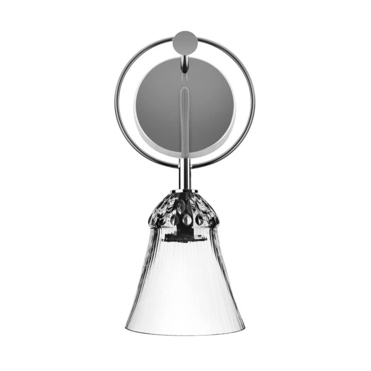 En 2011, Godefroy de Virieu et Stefania di Petrillo tirent inspiration d’un verre de la collection Apollo. Jouant avec sa paraison, ils la renversent à la manière d’une cloche éclairante, la dotant d’un anneau en acier chromé de dimension similaire. C’est ainsi que naissent les premiers luminaires de cette collection.