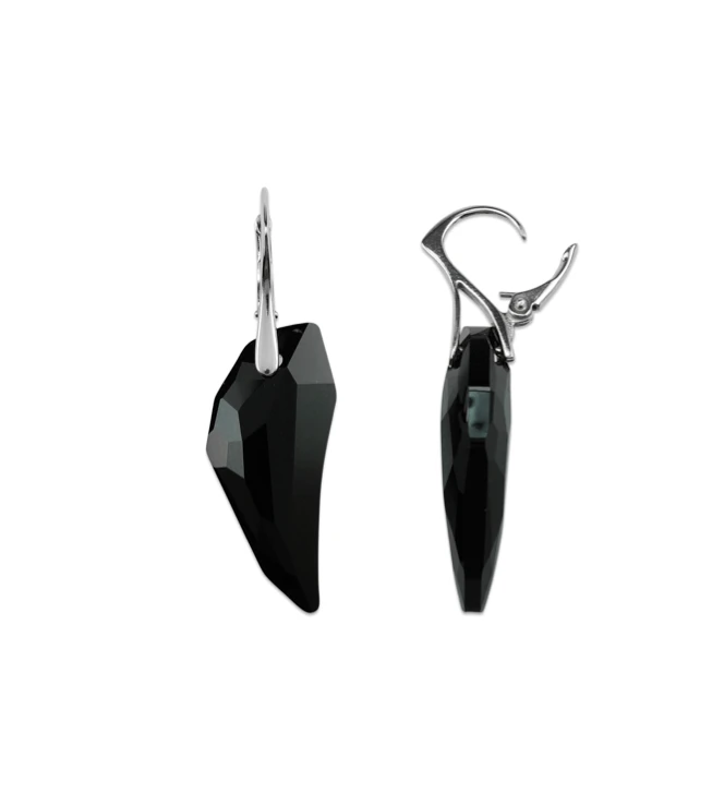 Boucles d’oreilles goutte, cristal noir et argent rhodié. Fermoir dormeuse.