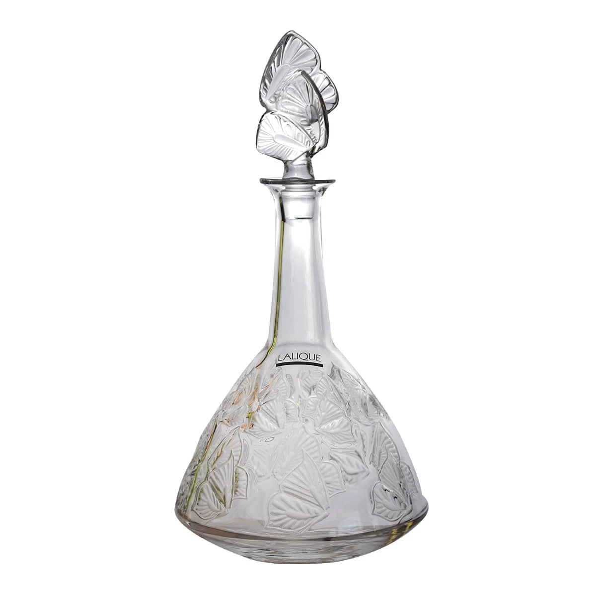 Comme en apesanteur, illuminée par le cristal une nuée de papillons aux ailes finement nervurées ornent cette carafe à décanter. Toute en légèreté et élégance, elle met en valeur la robe des plus grands crus.
