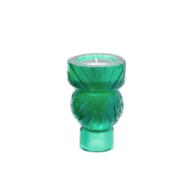 - Coffret deux bougeoirs en pâte de cristal, signés Daum France