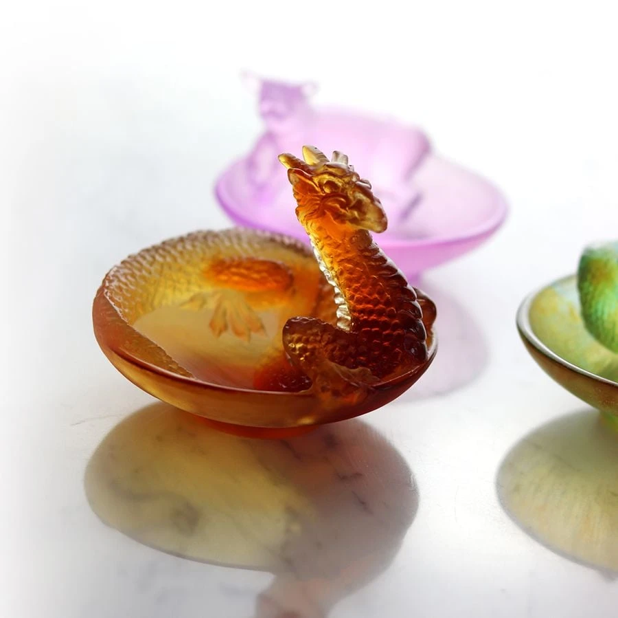 La maison Daum mets en avant l’horoscope chinois, avec cette superbe coupelle dragon, le symbole chinois en pâte de cristal, signée Daum France.