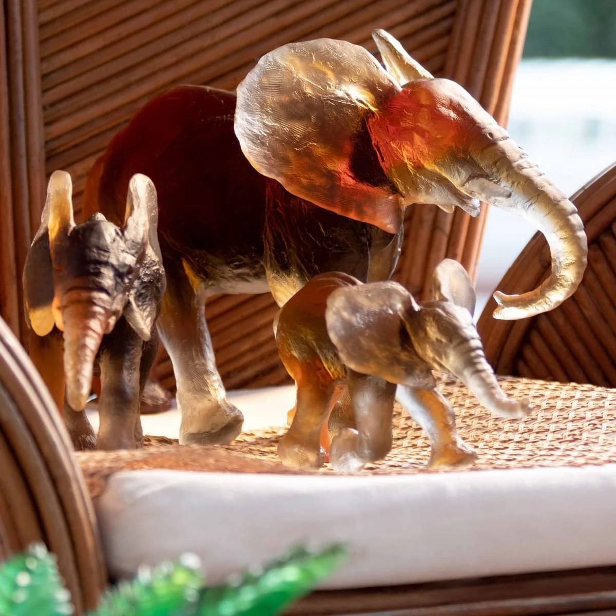 L’empreinte artistique d’Isabelle Carabantes se distingue par un effet de matière très brut. L’artiste nous offre un superbe défilé d’éléphants, petit troupeau harmonieux et heureux, que l’on imagine rejoindre un point d’eau dans la savane d’Afrique pour ensuite entamer un long périple et rejoindre un plus grand troupeau.