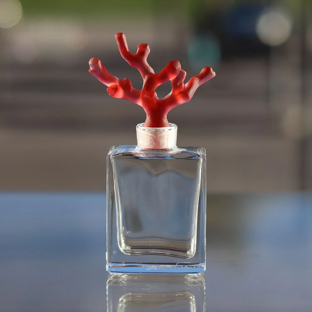 Nouvelle collection 2016 Daum, Flacon coraux signé Daum France. De la rencontre du musée océanique de Monaco et de la Maison Daum, est née la collection Coraux. Bouchonnage à l’émeri.