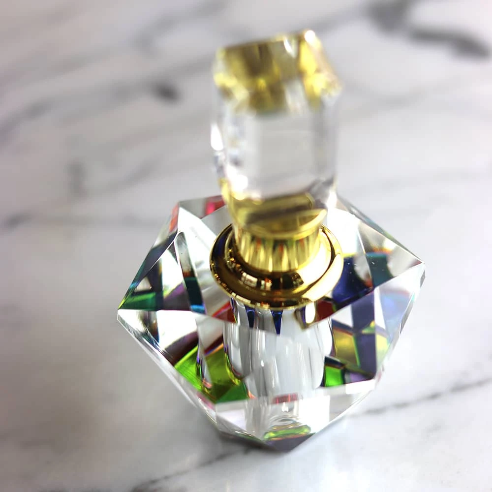 Flacon à parfum en cristal optique. Ce flacon vous accompagnera tant sur le plan décoratif qu’utilitaire. En effet, vous avez la possibilité d’insérer votre parfum à l’intérieur, une tige en cristal vous permet de déposer votre parfum sur les endroits souhaités.