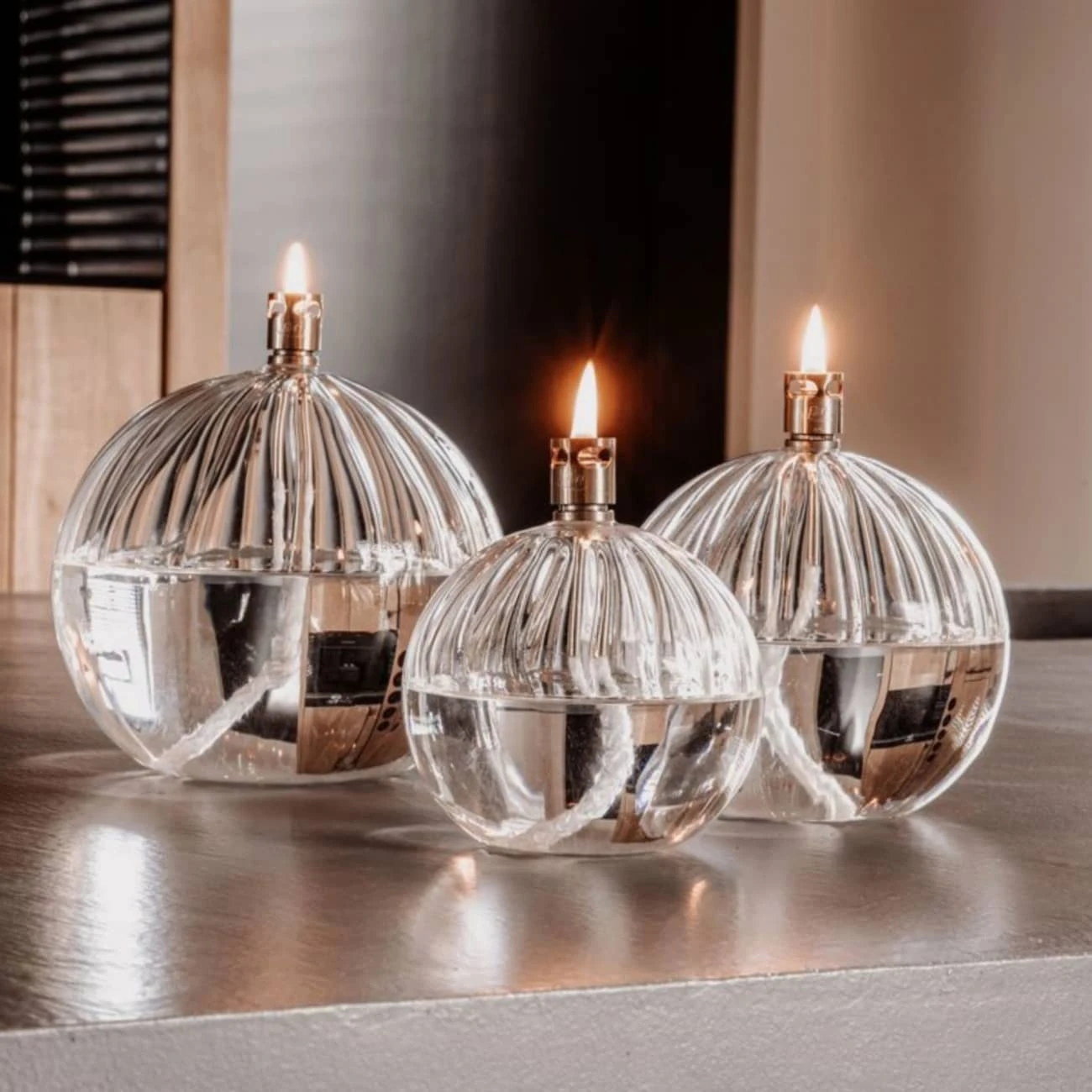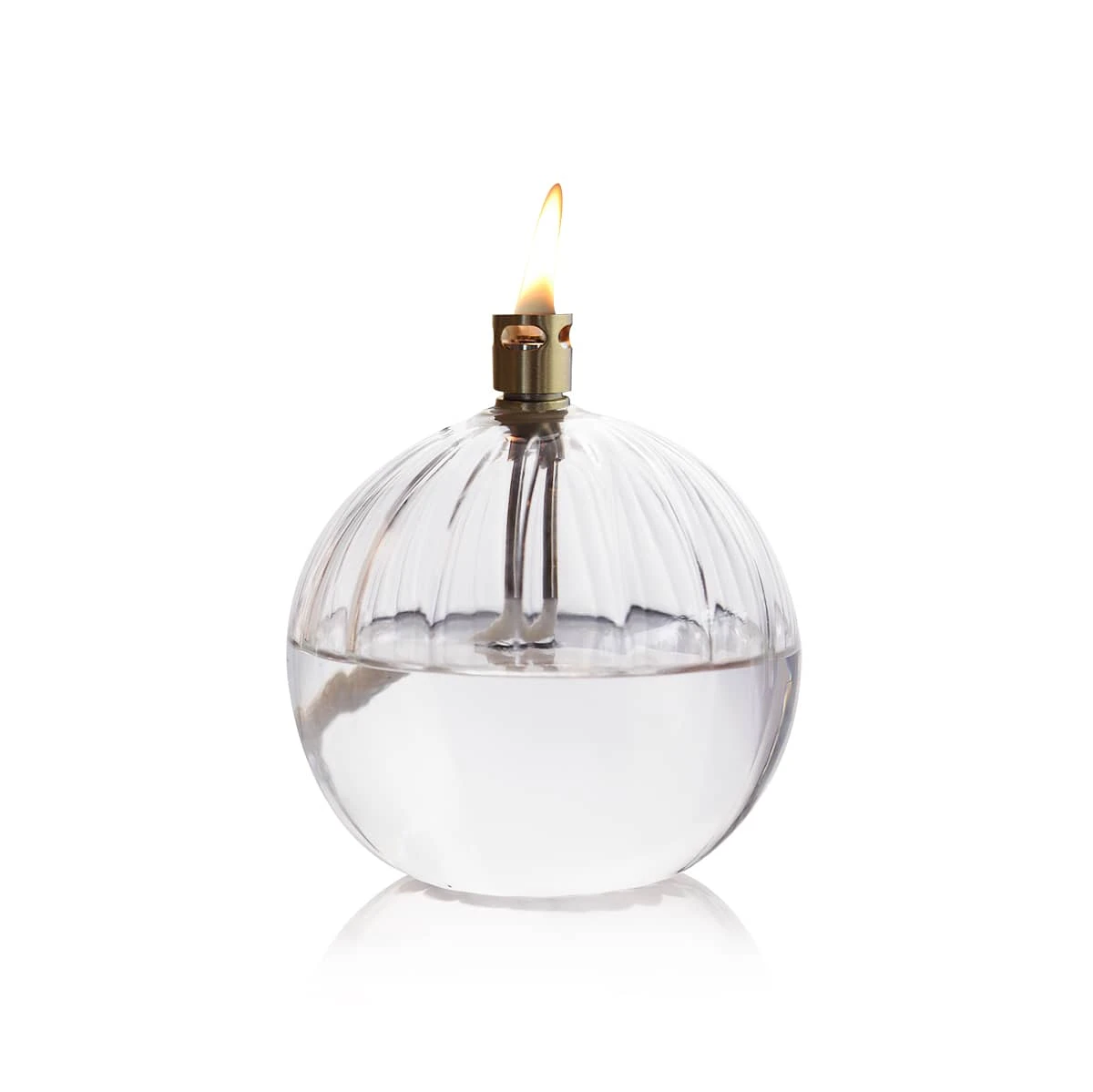 La célèbre lampe à huile se pare d’une paraison à côtes vénitiennes.