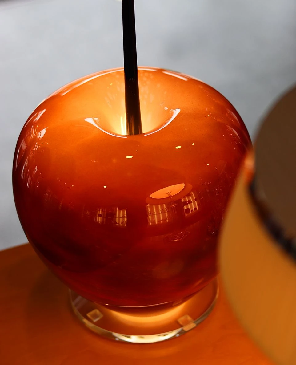 - Lampe cerise en cristal rouge orange, tige en cristal noir