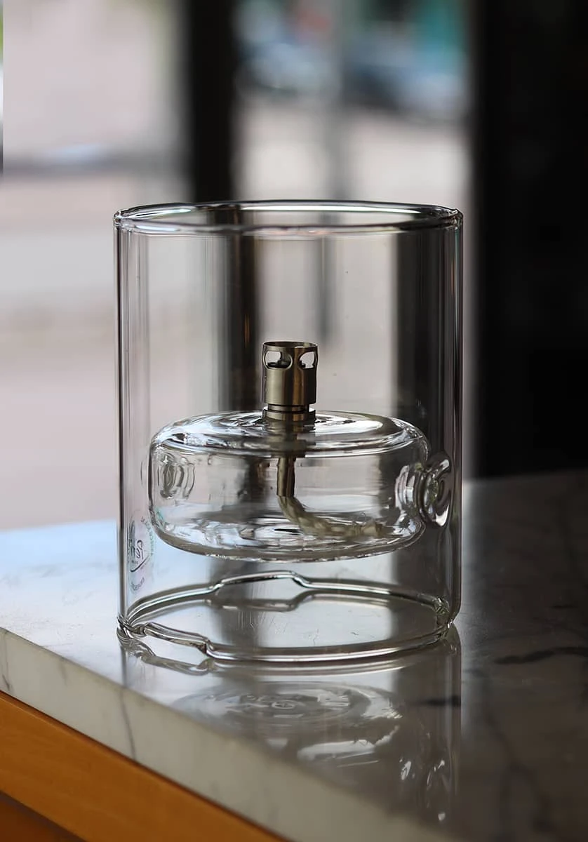 La célèbre lampe à huile galet avec son photophore, parfait pour l’extérieur, elle sera protégée du vent.