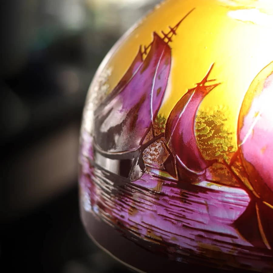 Créez une ambiance chaude et cosy dans votre intérieur avec cette lampe en verre multicouche, admirablement gravée à l’acide.