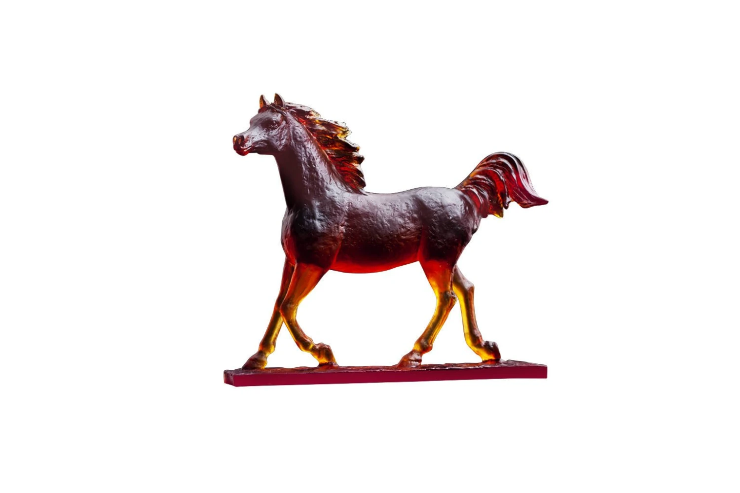 Fidélité, intelligence, beauté, élégance, cette superbe sculpture de 48 cm de hauteur est une merveille, le cheval majestueux Daum en plein mouvement.