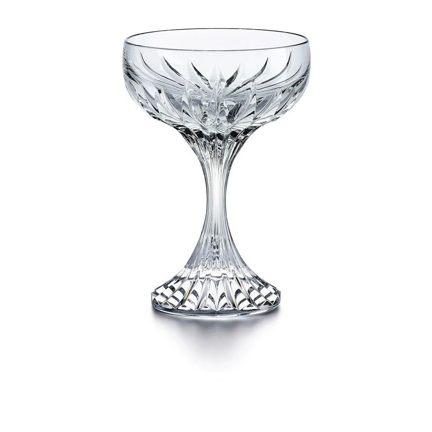 La coupe à champagne Masséna illustre un savoir-faire Baccarat. Directement taillés dans le cristal clair, les biseaux en jeux d’orgues irradient du pied jusqu’à la base du calice. Découvrir le service Masséna Baccarat.