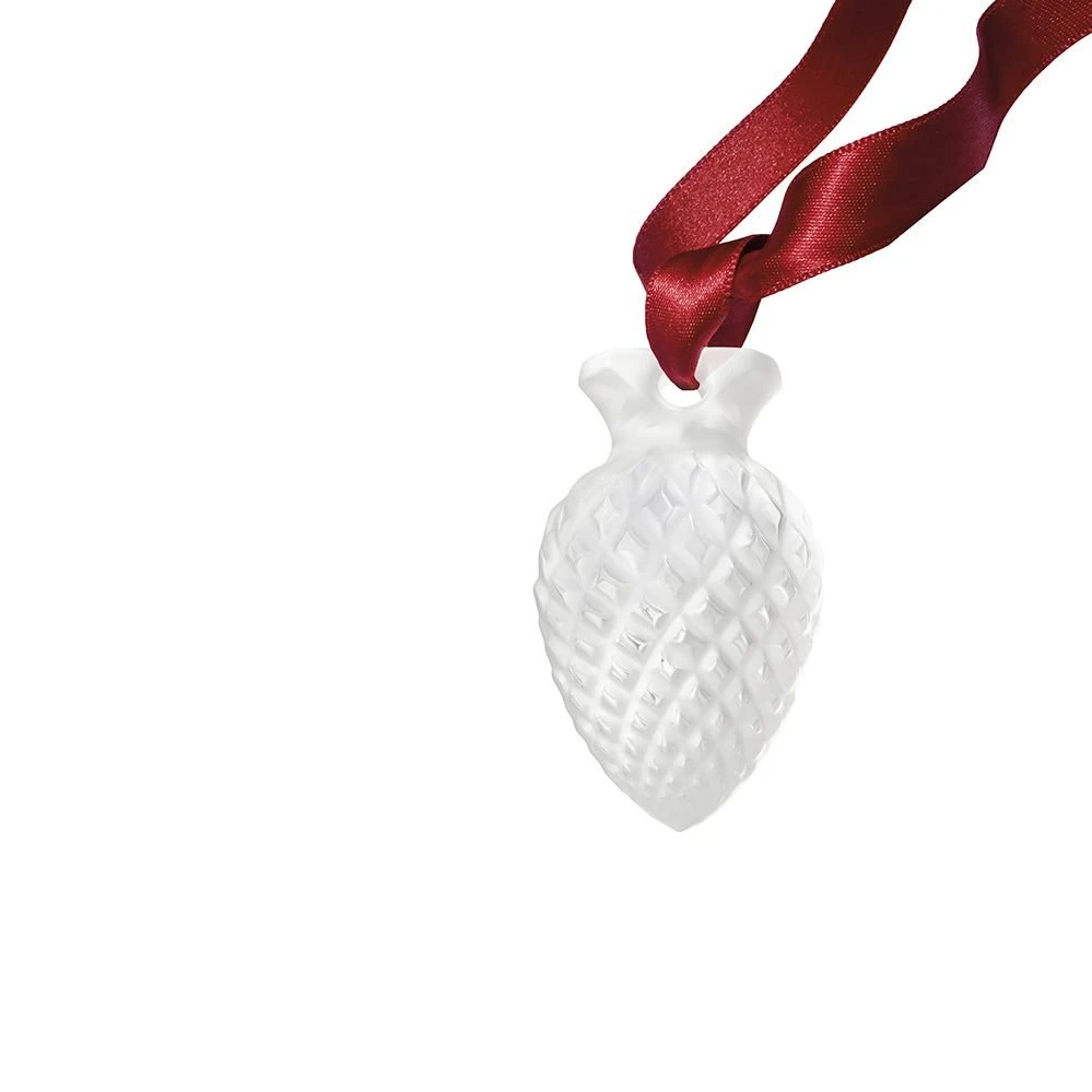 Découvrez les ornements de la cristallerie Lalique. Pour ce Noël 2019, la Maison Lalique cristallise la pomme de pin dans un cristal satiné repoli.