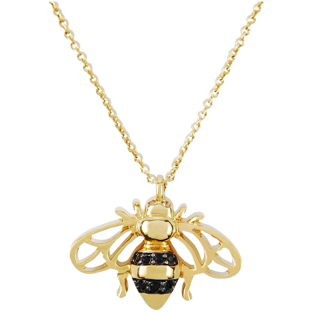 Le délicat pendentif abeille avec une finition en or jaune est un point culminant de la collection. Le corps est recouvert de cristaux Swarovski® Jet-black, les ailes sont conçues comme une surface découpée. La livraison comprend le collier assorti, plaqué or.