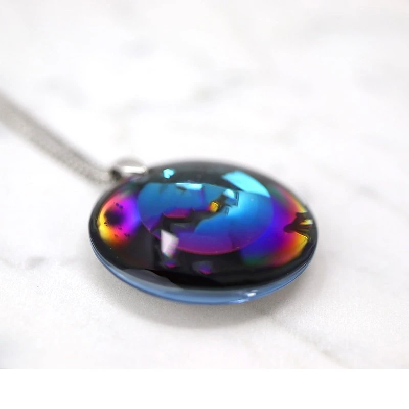 L’éclipse en cristal est captivante et à la fois intrigante. Grâce à une couche d’argent à l’arrière du pendentif, les couleurs du cristal reflètent alors celle de l’arc-en-ciel. Voici un bijou unique de créateur. Loïc Ortega est un des derniers artisan indépendant de Baccarat. Dix années d’expérience lui permettent de présenter des créations reconnues dans le monde verrier.