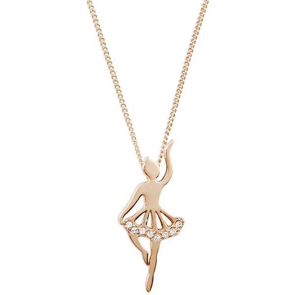 La danseuse classique immortalisée en plein mouvement. Une série de cristaux Swarovski orne sa robe.