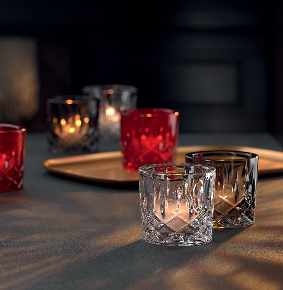 Créez une ambiance unique et cosy à travers ces luxueux photophores en cristal. Soyez à la pointe de la tendance en disposant harmonieusement les trois coloris disponibles. Cristal rouge, cristal fumé et cristal clair. Un indispensable pour recevoir vos amis durant une soirée d’été, ou d’hiver !