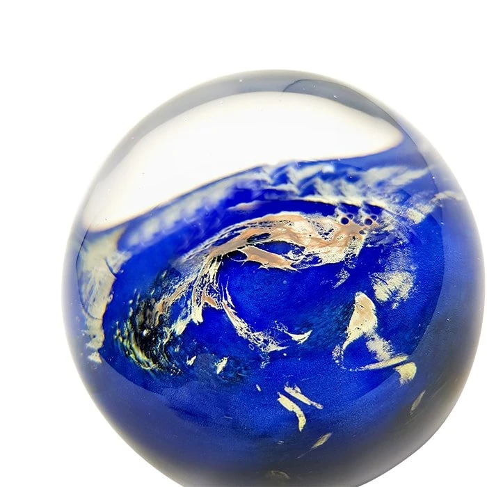Guillaume Rude, souffleur de verre, vous propose ses presse-papiers uniques, signés par sa main. Une création et production 100% française, réalisées dans son atelier à Saint-Louis. La photo peut-être légèrement différente, preuve du caractère unique de la création. Tenez le monde entre vos mains !