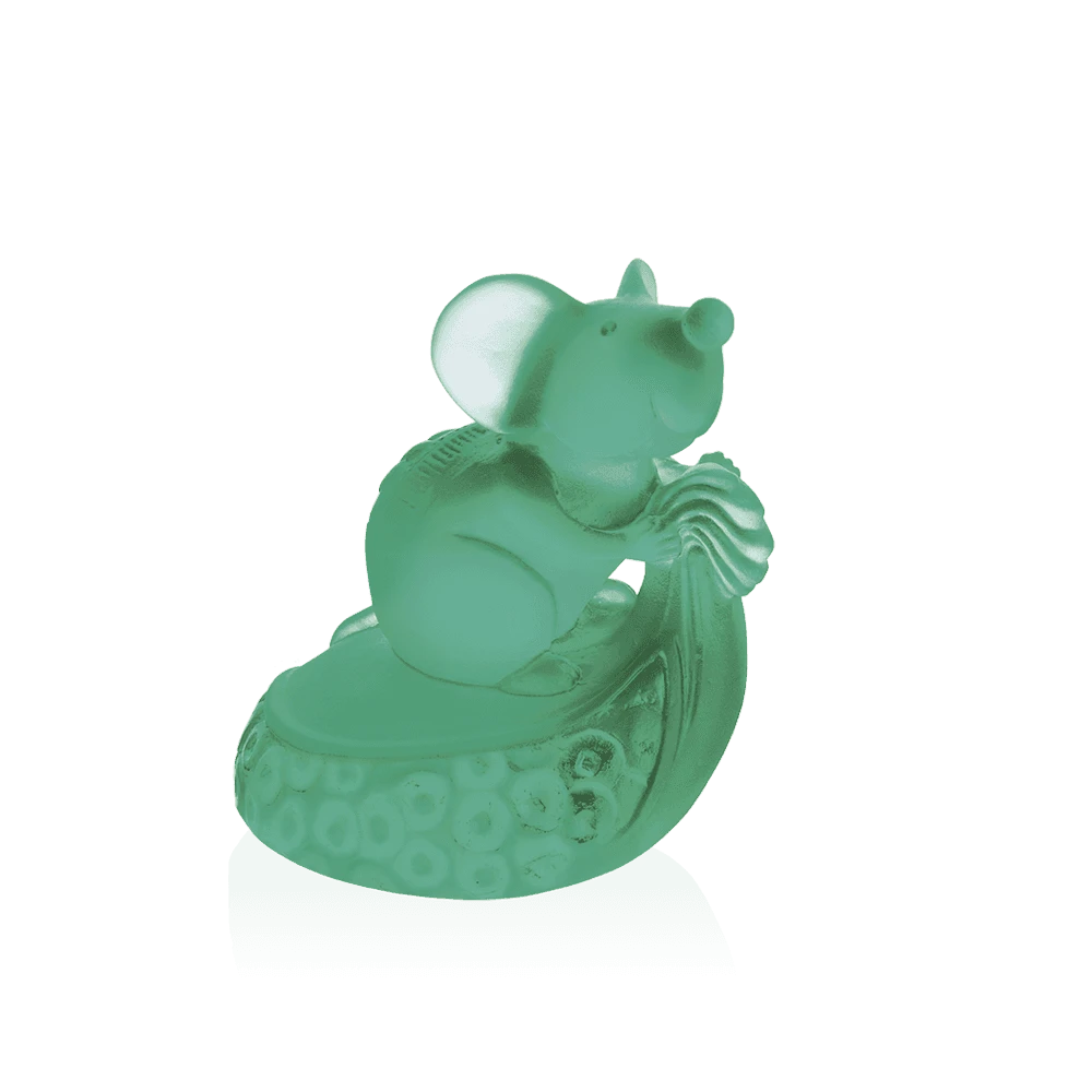La Maison Daum met a l’honneur le signe du Rat et présente le Rat Horoscope. Assis sur un sac rempli de pièces d’ancienne monnaie chinoise, cette adorable petite créature nous regarde avec son sourire amical. Cette représentation du rat symbolise la richesse, la générosité et la prospérité, pour une nouvelle année pleine de chance.