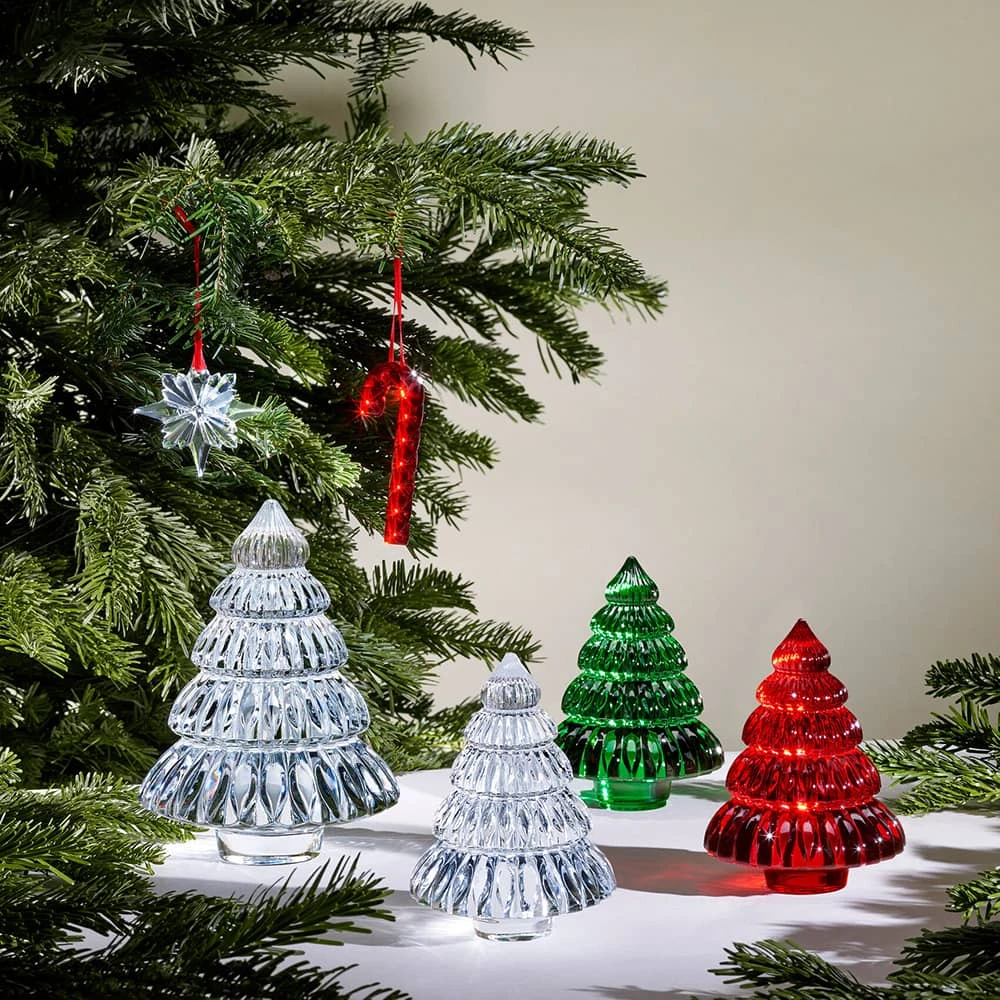 Les sapins de Noël Baccarat, transparents, rouges et verts, projettent une infinité de reflets, créant une atmosphère magique pour célébrer les festivités de fin d’année avec éclat.