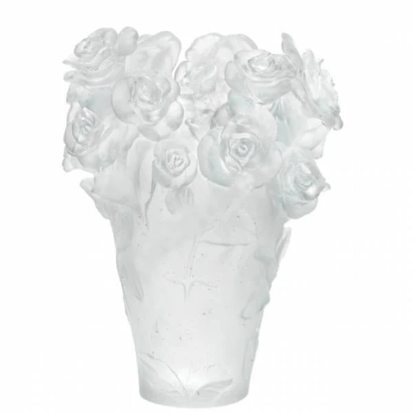 Le vase rose est emblématique de la maison Daum, une oeuvre d’art unique qui traverse les générations, sublimée grâce au processus de la cire perdu, les détails du vase sont époustouflants. L’art est le luxe ultime. Découvrir la collection Roses Passion Daum.
